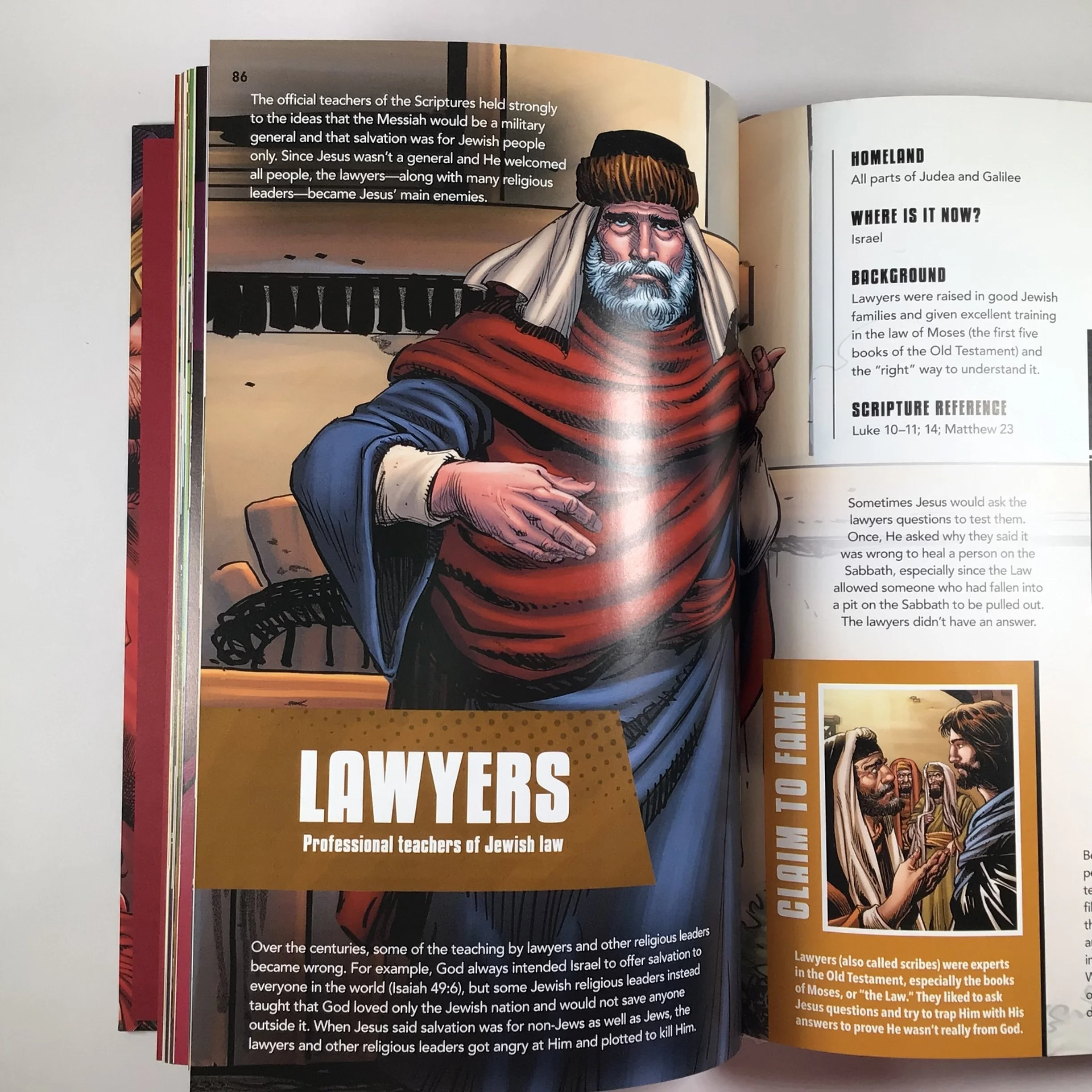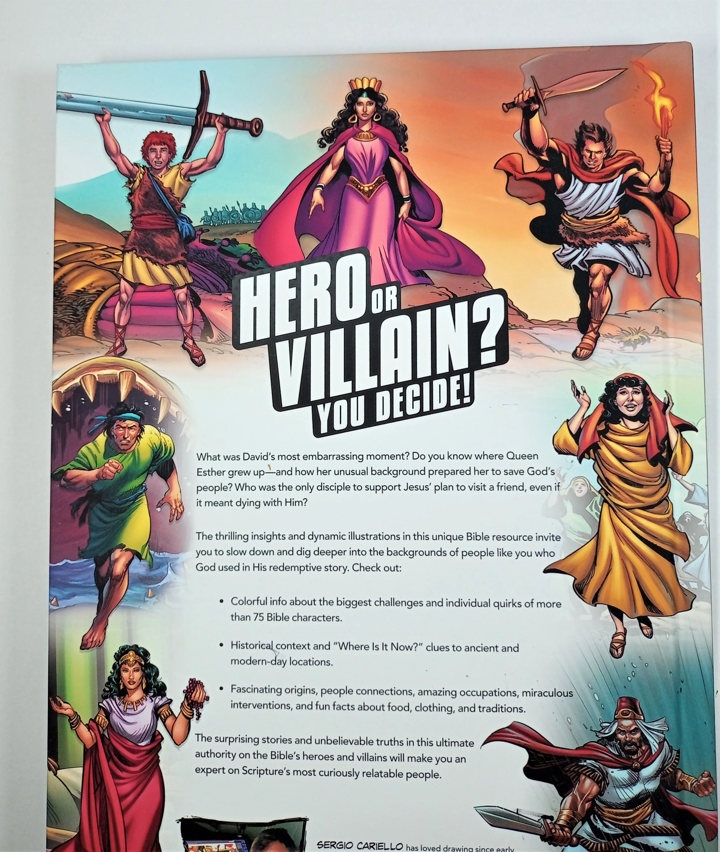 “Hero or villain? You decide!” This all-new addition to the bestselling Action Bible line bursts with fun facts, surprising stories, and full-color art for every young reader who wants to become an expert about the greatest heroes and villains of God’s redemptive story. This extensive, full-color guide to Bible characters includes fascinating facts and figures about the Bible’s most curious but sometimes relatable people. Including all-new illustrations from graphic artist Sergio Cariello, The Action Bible: Heroes and Villains draws in young readers with: • Colorful info about the crazy origins, amazing occupations, and strengths and failings of more than 75 Bible characters • Historical background and “Where Is It Now?” guides to ancient and modern-day locations • Diagrams, stories, and fun facts about food, clothing, traditions, individual quirks, and miraculous interventions From Adam and Eve’s most embarrassing moment to the details of a Roman soldier’s armor to Zechariah’s hometown, the unique insights and dynamic illustrations in this jam-packed guide jump off the pages and into kids’ minds and hearts as they meet people just like them whom God used in His redemptive story.